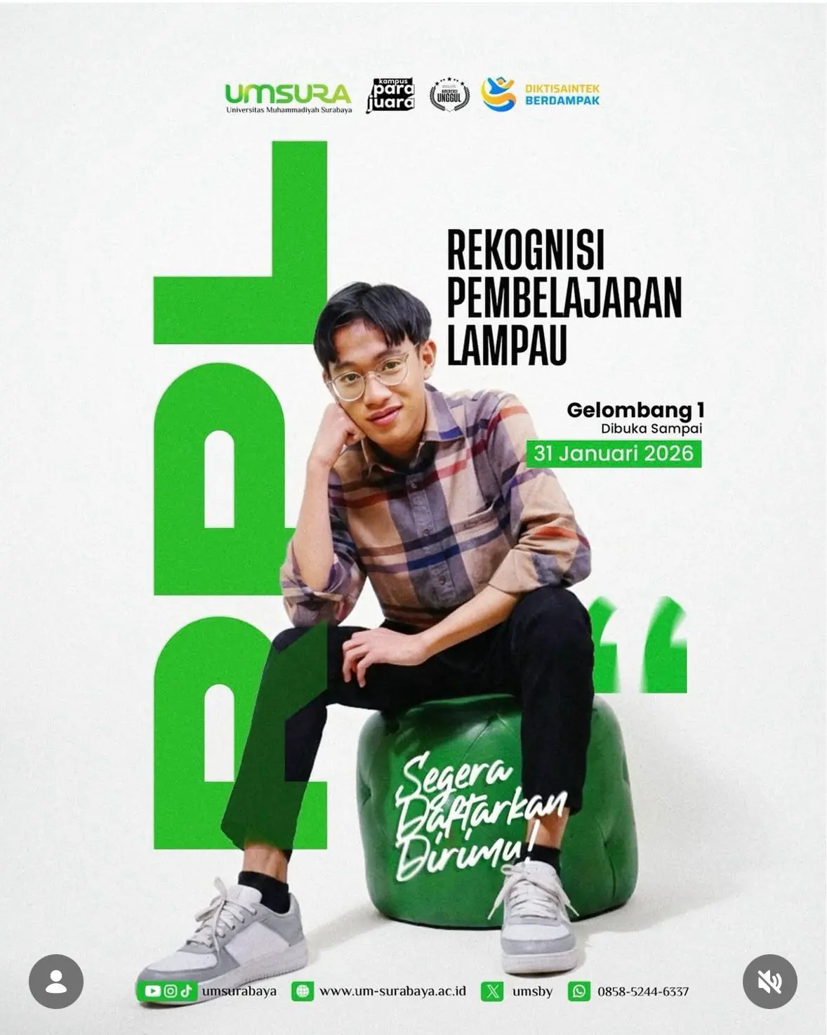 Wave 1 of the Muhammadiyah University of Surabaya Recognition of Past Learning (RPL) Lecture Program has been opened until January 31, 2026. More details at https://pmb.um-surabaya.ac.id/